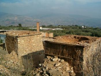 Situada al final de la calle principal (si no única) de Alcora, en su lado izquierdo conforme llegamos desde Canjáyar, vista desde fuera podría pasar por un coqueto cortijo de paredes encaladas y tejas ocres, con una pequeña ermita a la entrada. Sin embargo, al adentrarnos en el callejón nos sorprenden dos especies de garitas, y al final las estructuras pétreas de los antiguos hornos y tolvas, testigos de una época de una actividad frenética que no podía resultar más ajena a la estructura económica imperante de la agricultura tradicional.