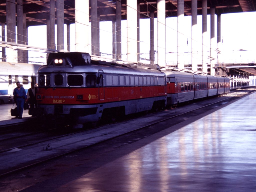 Las locomotoras Las composiciones El TALGO III en Almería Hemeroteca: El Ferro-carril ASAFAL – 2006: LOS NUEVOS ALTARIA GRANADA-MADRID VIA AVE Y LOS VIEJOS TALGOS III ALMERÍA-GRANADA-MADRID Vídeo: La estación del ferrocarril de Almería. Vídeo publicado con motivo del centenario de la estación de Almería. Contiene en su parte central (minutos 5.50 a 6.42) la salida de un tren Talgo III remolcado por la locomotora 352-006 ‘Virgen de Santa María’ con una composición de 12 coches, incluida la cafetería en 6º lugar. Fecha: no precisada, estimada finales de la década de 1990. |