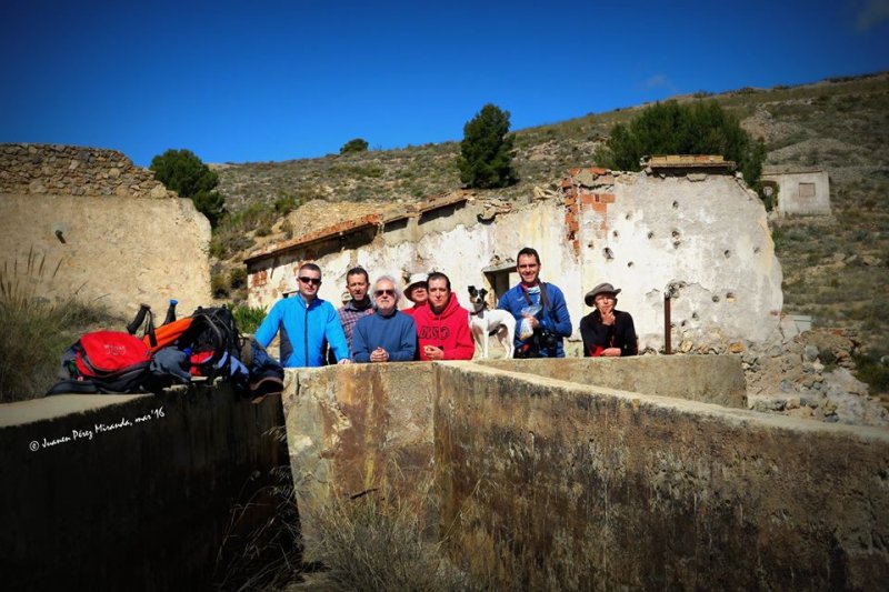 Volvimos a ganar altura zigzagueando sobre la loma y dejando atrás lo que se suponen los restos de la fundición Fuente Godoy. Encaramos ya la parte final de la ruta con nuevas vistas de las montañas multicolores y topándonos con un bonito acueducto semi oculto por la maleza. De nuevo tocaría ejercitar las piernas para ascender la fuerte pendiente y llegar a los cortijos de Bogaraya donde se realizó otro pequeño reagrupamiento con el fin de recuperar el aliento y continuar con la marcha. En este penúltimo tramo avanzamos viendo de nuevo a nuestra izquierda pozos y galerías que quedan en lo alto de las montañas y que los más mineros del grupo anotaron para poder visitar en otra ocasión.