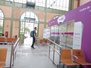 El mes de julio de 2024 ha marcado un nuevo hito en los recién cumplidos 129 años de vida del imponente edificio de la estación del ferrocarril de Almería. Sus puertas se han vuelto a abrir para acoger de nuevo a los viajeros, aunque esta vez de una manera muy diferente. El gran vestíbulo ya no es ese gran espacio y se ha visto reducido por la instalación de dos módulos prefabricados, uno para la venta de billetes de la operadora Renfe, y otro para información de Adif. Es posible acceder al andén, donde esperar sentado en alguno de los bancos, aunque ya no será el tren quien se estacione junto a la vieja marquesina, porque solamente llegan hasta la colateral de Huércal-Viator. Serán unos autobuses, aparcados en la fachada principal, los que trasladen a los valientes viajeros que siguen fieles a ferrocarril. El único consuelo que queda es entrar en un espacio que, incomprensiblemente, ha estado cerrado desde hace un cuarto de siglo sin tener uso ninguno.