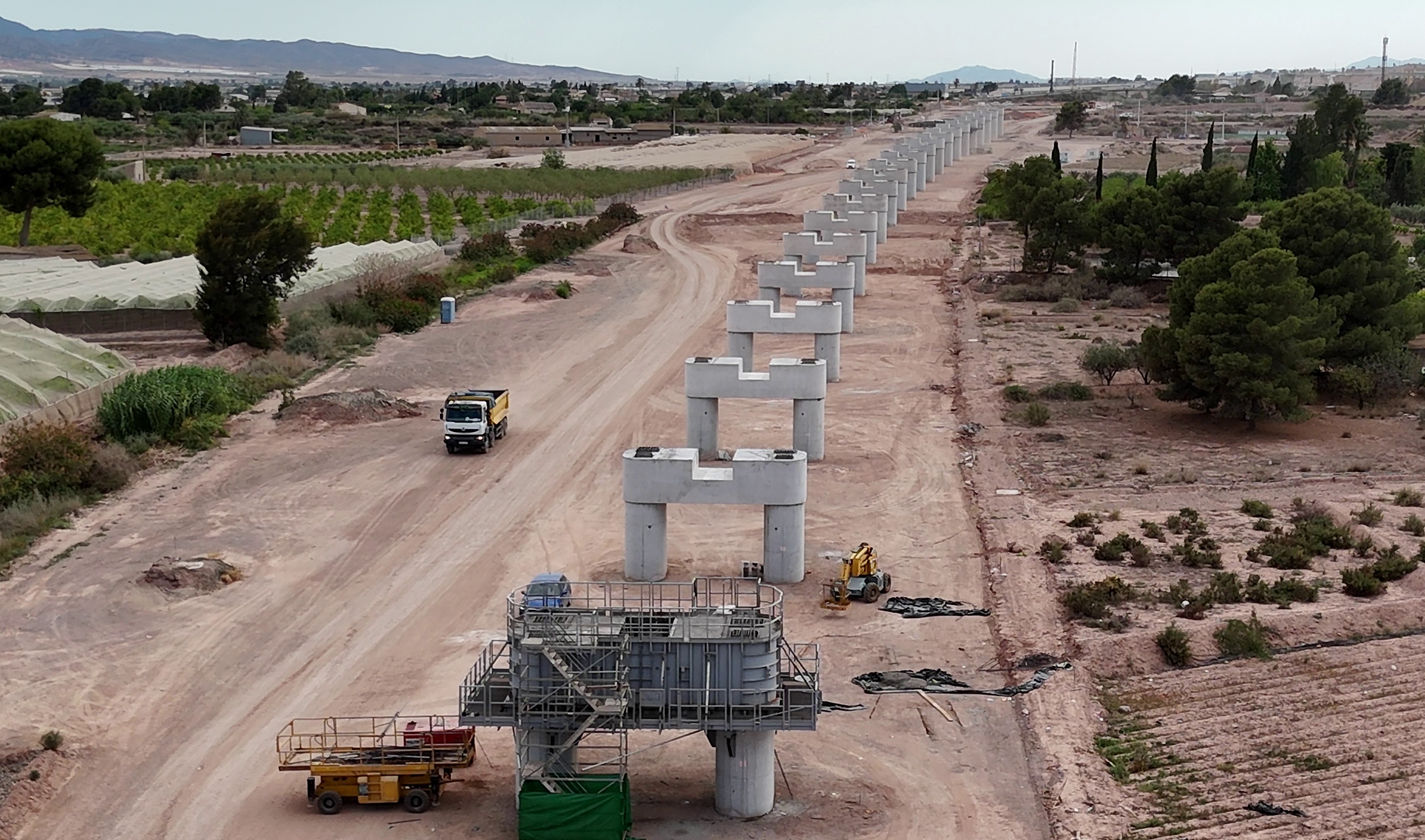 Comprende la ejecución de 9.929 m de plataforma de alta velocidad, 8 viaductos, 4 pasos superiores, muro de y obras de drenaje transversal. Prevista la construcción de una nueva estación de Cercanías. Se incluye también la reposición de multitud de servicios afectados de abastecimiento, saneamiento, alumbrado, canales, redes y servidumbres de riego, diversas líneas eléctricas aéreas y subterráneas de baja, media y alta tensión, y líneas aéreas y subterráneas de comunicaciones.