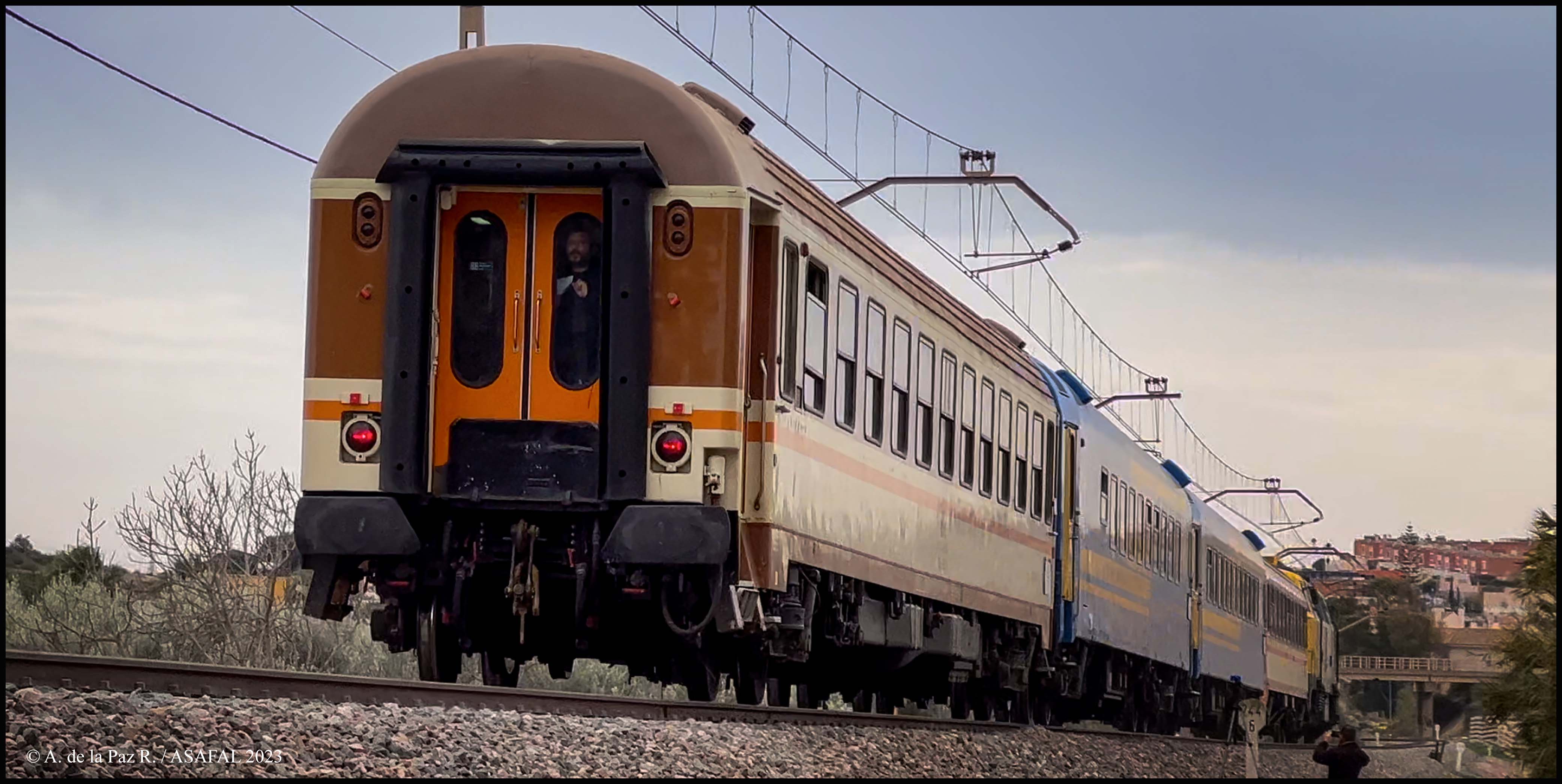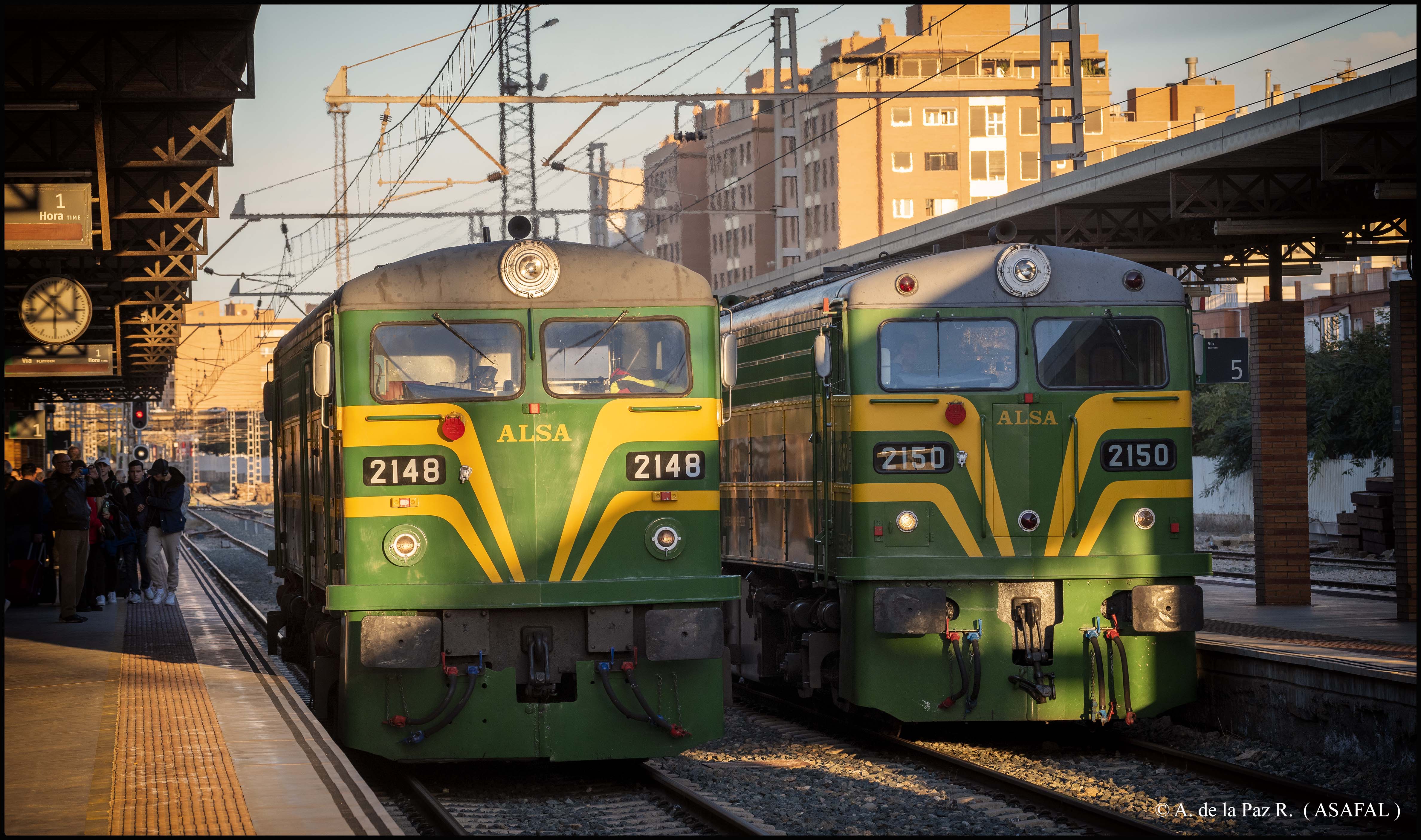 dos de la serie 2100 y una de la serie 1600, con su peculiar morro. Operado por ALSA, se trataba de un tren fletado por un grupo de aficionados británicos que había partido de Madrid-