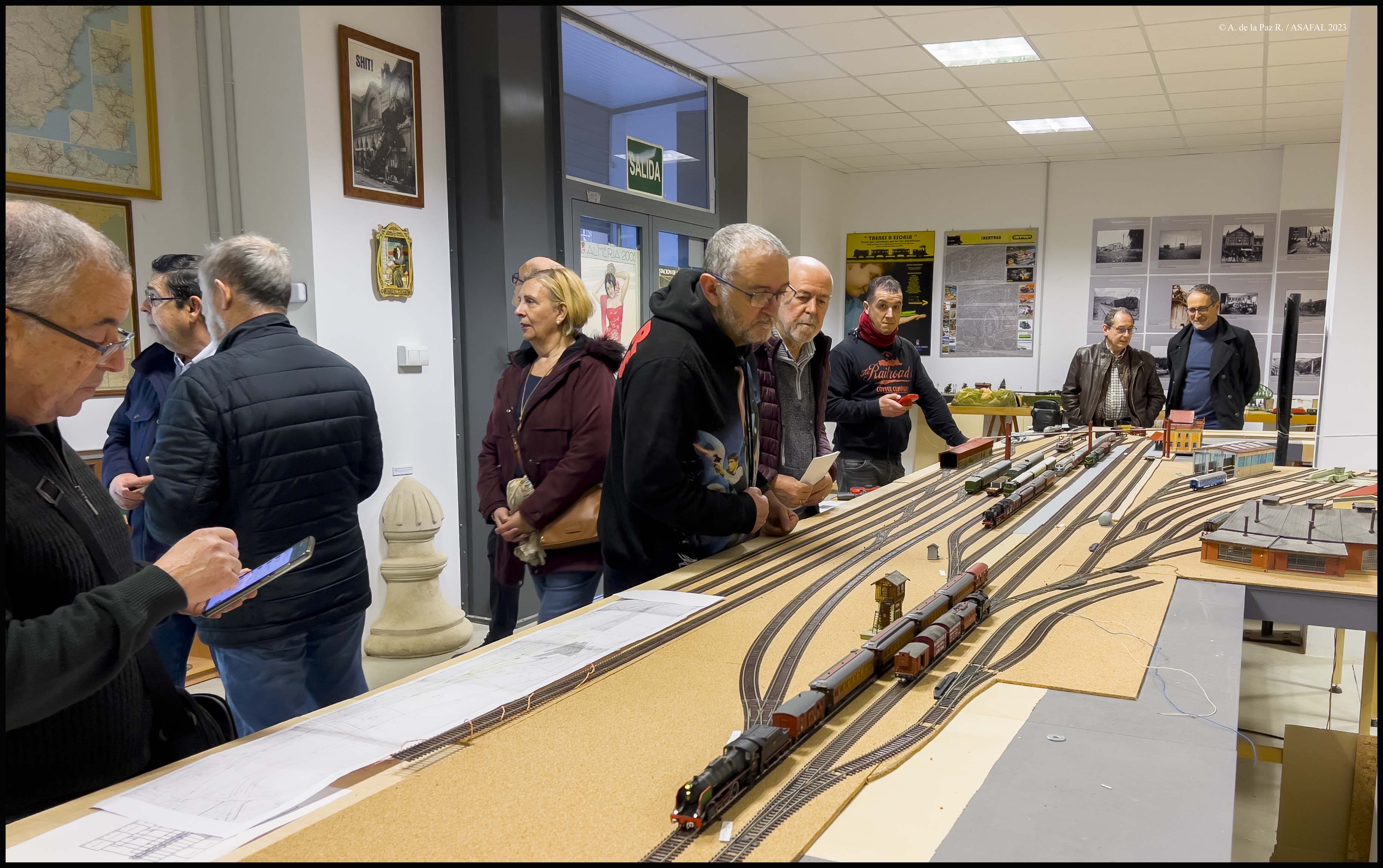 al día siguiente. Una nueva oportunidad para captar las mejores imágenes en su recorrido por las fuertes pendientes de la línea. ASAFAL abrió su sede social para recibir a todos los viajeros del tren que quisieron acercarse a conocer nuestra asociación y disfrutar del material expuesto, la gran maqueta en H0 y, cómo no, de una buena charla entre amigos mientras se apuraba un piscolabis en un ambiente ferroviario excelente.