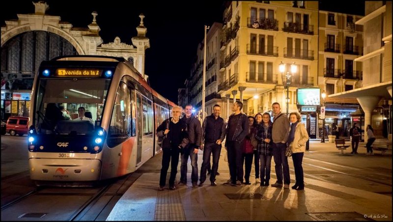 A media tarde llegamos puntualmente a la capital maña a bordo de un AVE S-100 , al contrario de lo que sucedió en el trayecto de vuelta, el cual completamos en un modernísimo S-103 de Siemens. Tras acomodarnos en nuestros respectivos hoteles en el centro de la ciudad, pudimos recorrer las zonas más carismáticas como la Plaza del Pilar y su Basílica. La cena tuvo lugar en el mesón típico “El Fuelle”, ya conocido por varios integrantes de ASAFAL  de una visita anterior. Merece la pena visitar el sitio aunque solo sea por echar un vistazo a su decoración ya que es en sí una especie de museo etnográfico intemporal en el que uno se puede encontrar de todo.  Además, degustamos  algunas de las especialidades locales. De regreso al hotel disfrutamos de la espectacular vista de la Basílica desde el puente sobre el río Ebro y el moderno tranvía que ha regresado a las calles de Zaragoza.